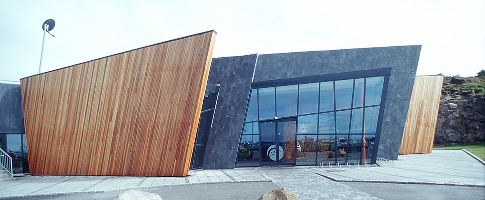 Framhlið, inngangurinn og veitingasalur er því hannaður af okkur.